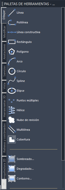 Paletas de herramientas para bloques, sombreados y comandos de uso frecuente. Utilice las paletas de herramientas para organizar bloques, sombreados y herramientas personalizadas en una ventana con pestañas. Se pueden personalizar fácilmente con la función Drag & Drop. Las opciones y los ajustes son accesibles desde los menús de acceso directo.